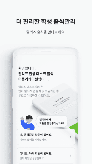 - 편리함은 극대화하고 불편함은 최소화한 랠리즈 출석 앱을 무료로 즐길 수 있습니다.