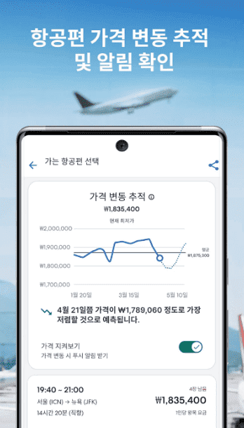 - 항공편 지연, 게이트 변경 등의 실시간 알림을 제공하고, 모든 여행 일정을 한 곳에서 관리할 수 있습니다.
