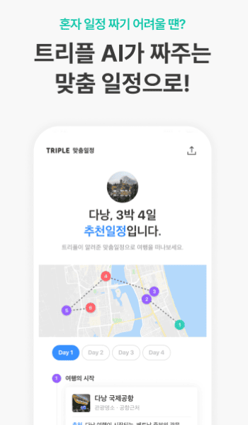 - 트리플 AI가 사용자의 여행 계획, 선호도, 도시 정보를 기반으로 자동으로 여행 일정을 제안해주며, 필요한 정보와 상품도 함께 추천해줍니다.