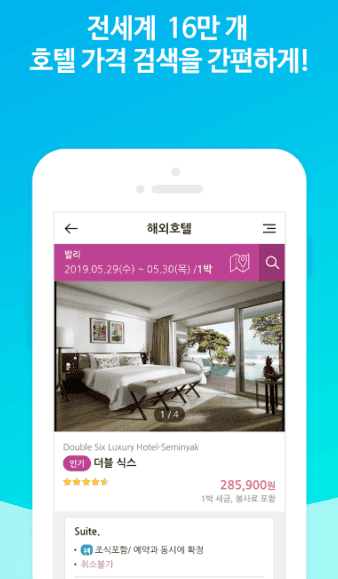 - 호텔, 모텔, 에어비앤비 스타일 숙소까지 다양한 형태의 숙소를 저렴한 가격으로 예약할 수 있습니다.