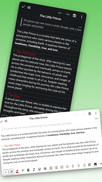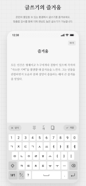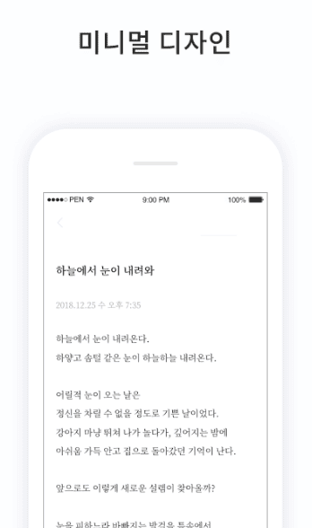 - 불필요한 모든 요소를 제거하고 오직 텍스트에만 몰입할 수 있는 심플하고 아름다운 디자인을 제공합니다. 이 덕분에 사용자는 다른 방해 없이 자신의 생각과 이야기에 온전히 집중할 수 있습니다.