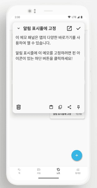 - 언제 어디서든 떠오르는 아이디어를 즉시 기록할 수 있는 빠른 노트 패널을 제공합니다. 중요한 메모는 알림창에 고정해둘 수 있어 순간의 영감을 놓치지 않고 창작의 재료로 활용할 수 있습니다.