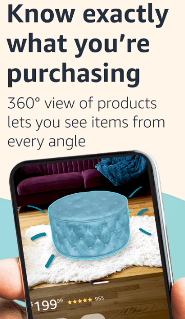 2. 360° 제품 보기 및 실제 공간 확인: "View in your room" 기능을 활용하여 제품을 360°로 확인하고, 휴대전화의 카메라와 VR을 사용하여 실제 공간에 어떻게 어울리는지 확인하세요.