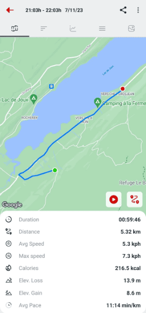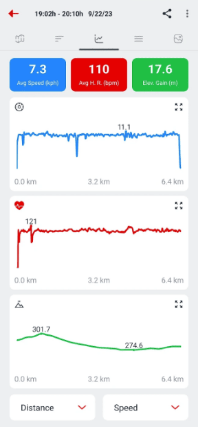 3. 상세 운동 통계: 각 세션의 거리, 속도, 페이스를 정확히 추적할 수 있으며, GPS 경로와 함께 상세 통계를 제공하여 운동 성과를 실시간으로 확인할 수 있습니다.
