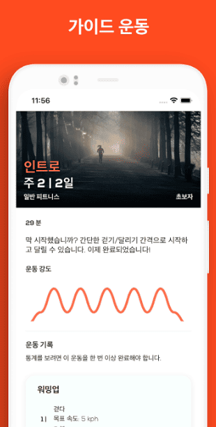 사용자의 운동 능력에 맞춘 다양한 맞춤형 훈련 플랜을 제공합니다. 5K, 10K, 하프 마라톤 등 단계별로 달리기 실력을 향상시킬 수 있으며, 계단 오르기, 하이킹, 트레일 러닝 같은 독특한 프로그램도 포함되어 있어 다양한 운동 경험을 제공합니다.